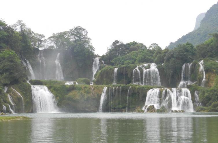 德天瀑布位于广西壮族自治区崇左市大新县硕龙镇德天村,中国与越南边境处的归春河上游,瀑布气势磅礴、蔚为壮观,与紧邻的越南板约瀑布相连,是亚洲第一、世界第四大跨国瀑布,年均水流量约为贵州黄果树瀑布的三倍,为中国国家AAAA级旅游景区。
