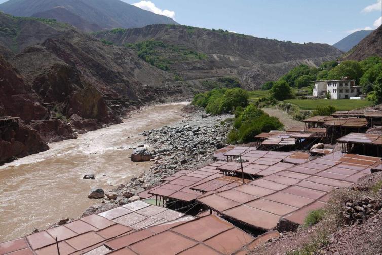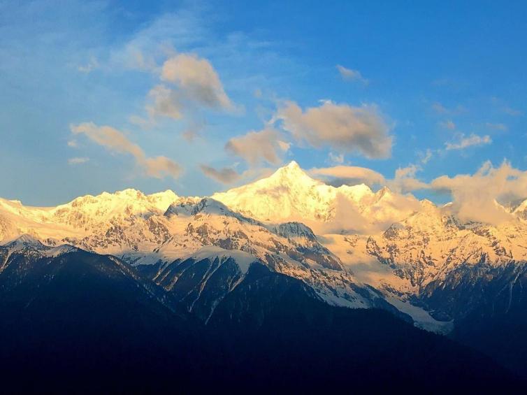 翌日清晨,飞来寺日出守候,运气好的话可以拍到日照金山。走在滇藏交界的地带,感动我们的不仅是雪峰上、湖泊里弥漫着的神秘蓝色气息,更是山谷中流溢着一种深藏不露的奇异力量。站在澜沧江左岸的大山之巅向下俯瞰,蓝天白云下,碧绿的江水滔滔南去,红色和棕色的山体显露出巨大的皱褶深切谷底,红色和银色的盐田在两岸相互映照,雪山下白色的藏房也如花儿一样盛开。