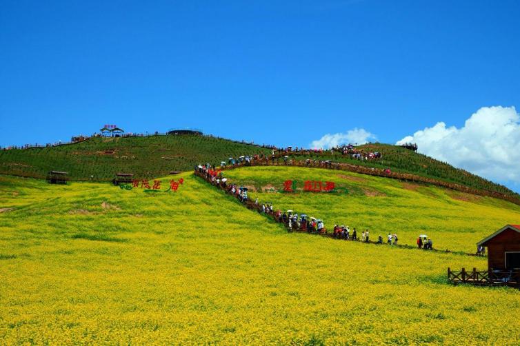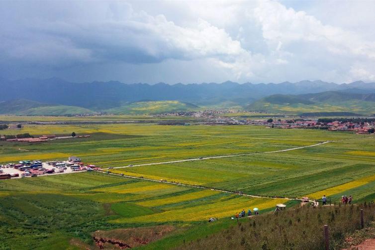 祁连—170km—门源—12km—达阪山观景台—30km—黑泉水库—90km—西宁从祁连回到门源,一路祁连草原连片,牛羊成群,到门源看万亩油菜花,上达阪山俯瞰门源美景,远眺岗什卡雪峰,经黑泉水库回到西宁。门源油菜花花期7月5日到8月5日之间,会受气候影响稍有变动。