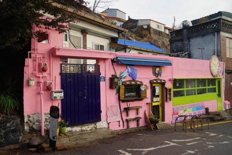 这里所有的房子房顶都涂着颜色,绘着大大的“福”字,红的、黄的、绿的、蓝的...漫步在壁画村,你会发现,很多以世界童话名著为主题的壁画和童话世界里的童话人物,五彩斑斓、栩栩如生,仿佛在邀请你光临童话世界。