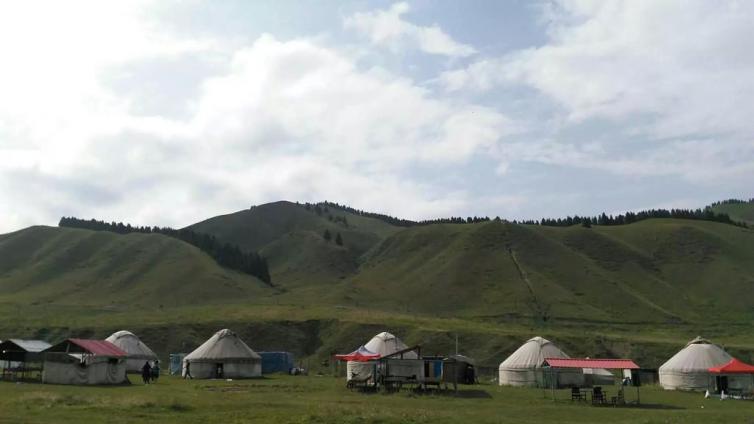 乌拉斯台在蒙古语中的意思是有山有树的地方,在维吾尔语中的意思是高山上的平台。这里是高山平台,也被称为“空中草原”,极目远眺,蓝天下群山峻峭,牛羊成群,密林绿野,溪流淙淙;云杉掩映下,毡房点点,小楼座座,风光如画。