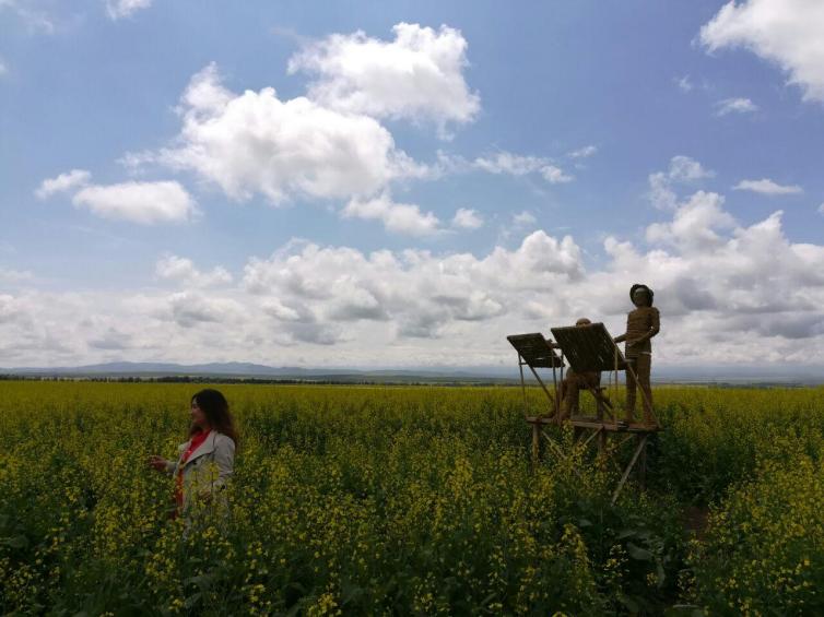 昭苏县位于伊犁州的西南角,汗腾格里峰下,四周群山环抱,因出产“腾昆仑,历西极”的天马而闻名于世。七月的昭苏万亩油菜花盛开,,草原上各种叫不出名字的鲜花相互映衬,仿佛自己走进了画中。站在高坡处,田间边,草原上,你可以尽情领略油菜花所构建多姿多彩的图画,看天地造化之神奇,看天光云影在波浪壮阔的油菜花海中徜徉的壮美。