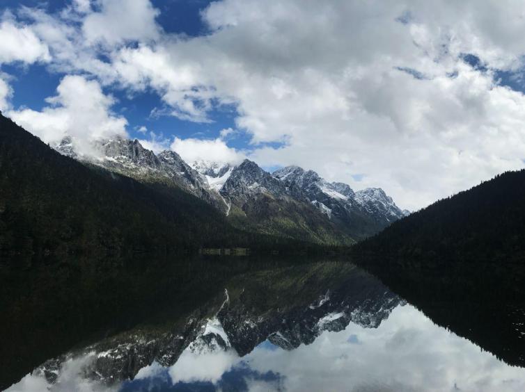 在党岭众多高山海子中,最为美丽动人便是葫芦海。葫芦海是高原中罕见的海子,植被茂密,海拔高。四周雪山环绕,湖水清澈见底,清晨雾气升腾,雪山若隐若现,如同梦幻仙镜。
