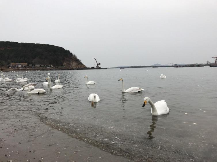 烟墩角是个依山傍海、景色秀丽的小渔村,每到寒风飘雪时节,成群结队的大天鹅就来到这里,在碧波荡漾的海湾里,或追逐戏水,或引吭高歌,或翩翩起舞,使人如临仙境,如梦如幻。