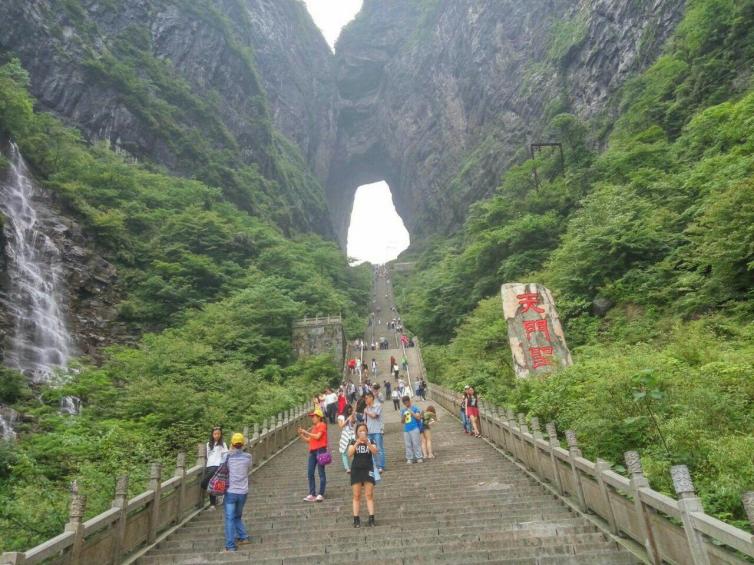 拔地擎天的天门山,山势陡险峻拔,景色雄奇壮丽,森林覆盖率达90%,其间古树参天,藤蔓缠绕,青苔遍布,石笋、石芽举步皆是,处处如天成的盆景,被誉为世界最美的空中花园和天界仙境。