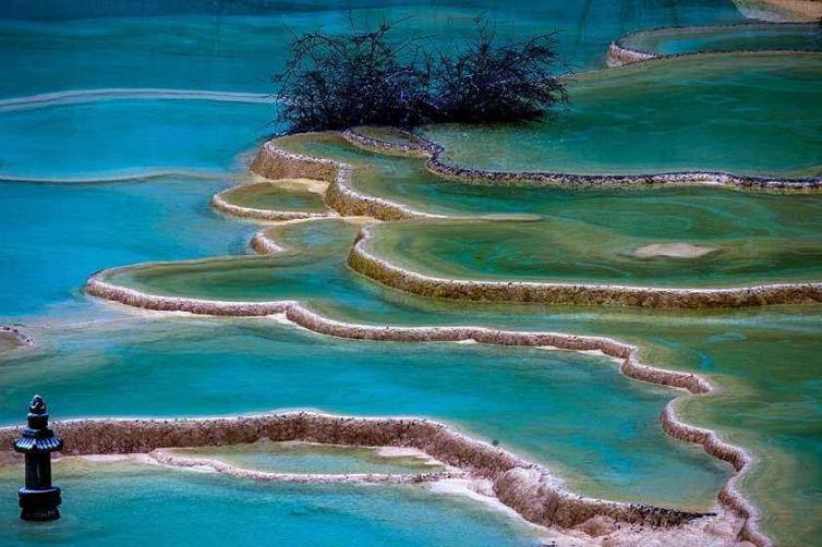 今天一整年都没有等来九寨沟开放,但是同属于钙化池风景的黄龙也是超美哒。这里的冬天真的很像童话,一场雪后,松林绿池经幡庙宇,肃穆安静又让人移不开目光。