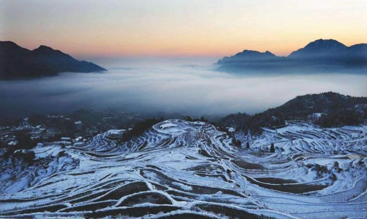云和梯田四季都有不同的风情,当然冬裹银裘、雪毯素装的梯田雪景最是撩人。云海,雾淞,景色变幻莫测,每次都有不同的惊喜,所以每年冬天这里就成了摄影爱好者的朝圣地。