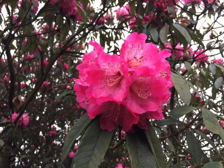 莽山高山杜鹃与一般杜鹃相比,树高可达3米,花朵更为硕大,花期长达3月之久,固有“人间四月芳菲尽,莽山杜鹃始盛开”。除了杜鹃花开,现在也是莽山茶农的采茶季,当地盛产高山云雾茶,游客可跟随茶农上茶山做一回采茶人,带着孩子采摘当地的春茶。另外,莽山温泉出水温度达55.5摄氏度,有多种有益于人体健康的微量元素和矿物质,长途跋涉之余,泡温泉赏杜鹃花也是十分惬意。
