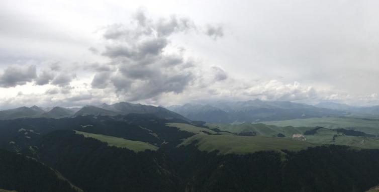 世界一流草原——喀拉峻,哈萨克语,意为:“黑色莽原”。山峦起伏跌宕,生长着茂密的雪岭云杉,苍苍莽莽。山顶是浑然一体向南倾斜的高台地貌,犹如一座悬空草常芳草萋萋。