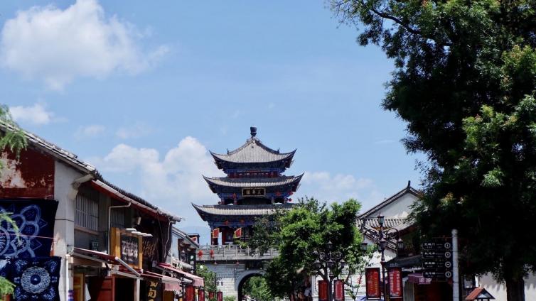 大理古城东西宽约1000余米,南北长约2000余米,南北纵向有三条大街,东西向有五六条小巷。城内房屋皆 土木结构瓦顶民居,街道大多由青石板铺设而成。大多数街道有引自苍山的清泉水流淌。 古城方圆十二里,建有四座城门楼以及四座角楼。城墙四面设有四道城门,即东门洱海门(又称通海门),南门双鹤门(又称承恩门),西门苍山门,北门三塔门(又称安远门)。城外有护城河。清代多次重修,城内保持着典型的棋盘式结构,南北城门对称,城内街道纵横交错,有“九街十八巷”之称。