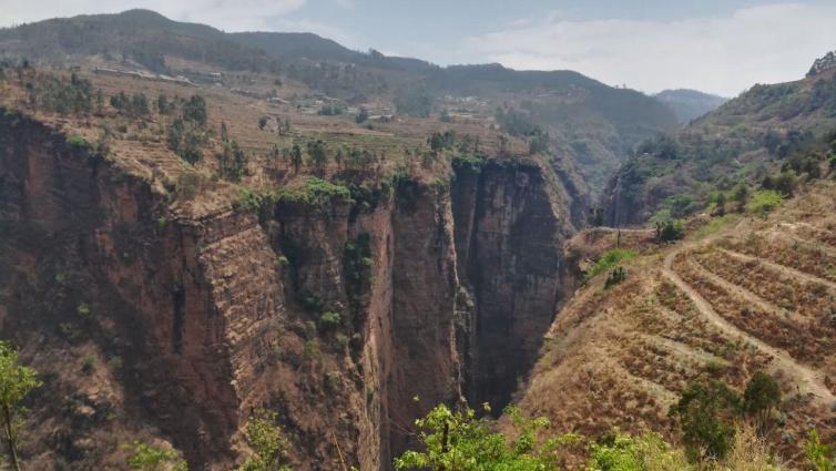 有的景色是人们熟知的,有的景色还藏在交通不便、人烟稀少的地方,云南武定的大山深处就藏着这么一个地质奇观----己衣大裂谷。