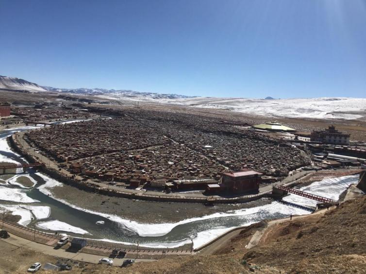 不同于色达五明佛学院依山而建,亚青寺的大部分修行者的房屋是绕河而建。亚青寺西边的山坡上,有一座莲花生大士的雕像,是亚青寺的一个地标。站在山顶,整座亚青寺一览无遗。来这里,僧人们的修行令人感悟颇多,哪怕是看到简单的五彩经幡,也会觉得更加震撼人心,白玉县不仅有独特的藏域文化,也有着美丽迷人的自然风光。