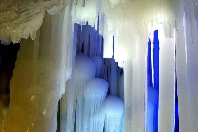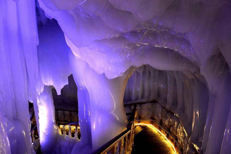 特别是夏天,洞外碧草如茵,鲜花盛开,而洞内寒气逼人,冰笋玉立。这也是世界上迄今为止的永久冻土层以外发现的罕见的大冰洞。