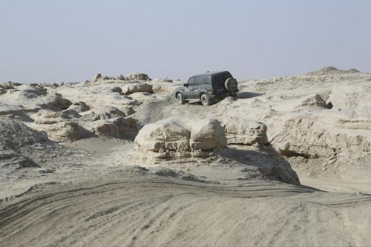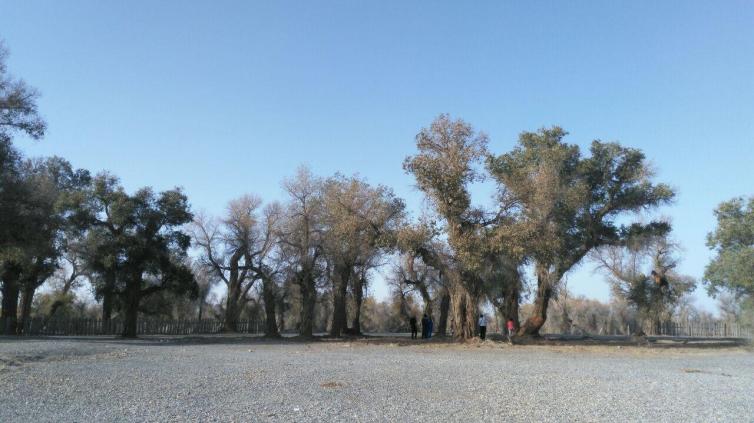 218国道沿着塔克拉玛干沙漠的东南部向若羌县行驶,沿途是一望无际的沙漠和戈壁,行驶到若羌路段,一大片的胡杨林驶入眼前。