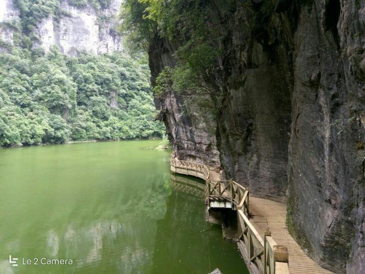 小七孔风景区以精巧、秀美、古朴、幽静著称,景区移步换景,布局紧凑。有著名的七孔古桥、68级响水河瀑布、拉雅瀑布、龟背山原始森林、野猪林漏斗森林、天钟洞卧龙河生态长廊等景点,更有掩映在森林之中的鸳鸯湖。这里的六十八级瀑布,水面时宽时窄,水流时而急促狂泻时而平坦舒缓,水的颜色也随着不同的状态而变化,在这样的极端中,你能感受到的是一种矛盾的和谐。水上森林是荔波小七孔景区的一个著名的景观,其属于罕见的岩溶地貌水上森林区,这里的千百株树木,包括珍奇树木十多种,全都植根于水中的顽石上,又透过顽石扎根于水底的河床。鸳鸯湖秒大小两个天然湖泊相连而成,大小湖这间有长约700米的“水上林荫”,两岸秀木枝蔓成棚。湖区浓荫四匝,水鸟相呼,境界幽绝。置身其,犹如仙境