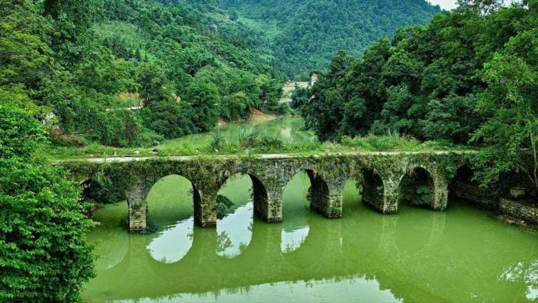 大七孔景区气势恢宏,雄浑险峻。妖风洞激流跃出,形成层层跌水,构成一曲曲浑厚激越的交响乐。天生桥(仙人桥)犹如自然力所建树的东方凯旋门,堪称天下一绝。