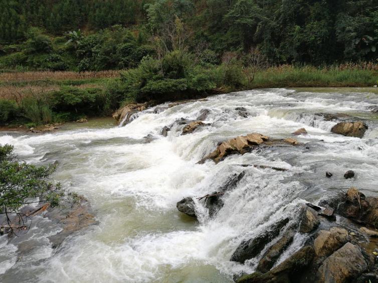 位于罗平县城东南40公里处的群山峻岭之中,紧邻鲁布革三峡景区,河道滩头密布,瀑布丛生,两岸古榕参天,翠竹遍地,河水剔透碧蓝,清澈见底,远山近水倒映其间,美不胜收。