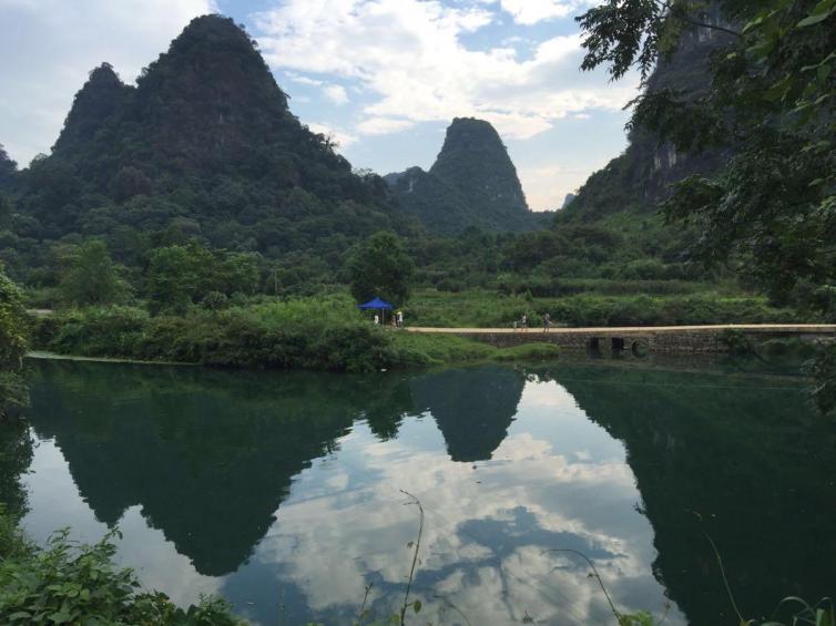 遇龙河地水清得见底,蓝得透亮,伫立江边,你会觉得它是头顶上那万里无云的天。小家碧玉的遇龙河漂流,会彻底洗涤掉自驾的疲劳,身心愉悦,乐不思家。
