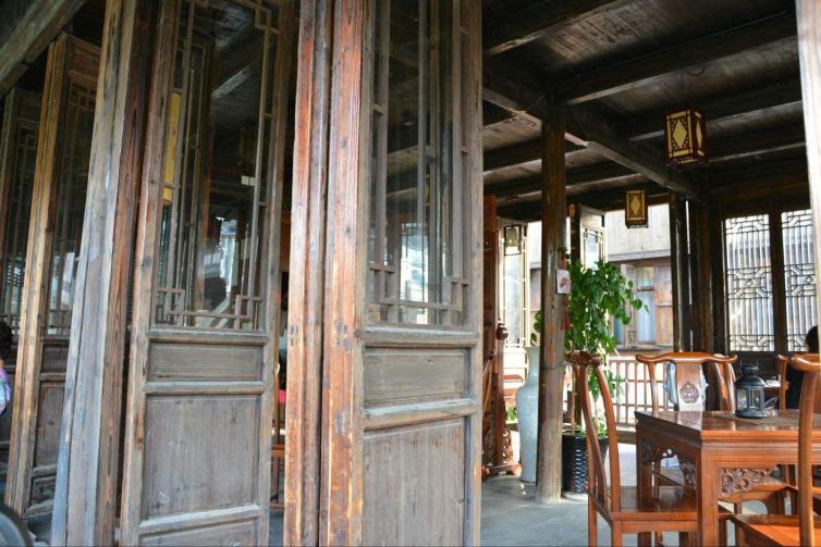 当我们还陶醉在湖天美时,我们进入了古色古香的“汉贤茶馆”。一进去,就好像回到了几千年以前,墙上挂着的工艺品真是惟妙惟肖。我们继续向前走,南门口有一条小渠,渠里有一群鱼,渠上铺着玻璃,我们走在上面就如在水上行走,让人心惊胆颤!