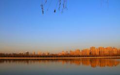 经过了半小时,我们终于抵达了浮龙湖生态景观区,下了车,我们神采奕奕地在广场上走着。到了广场边,我抬头一望,湖心岛就在桥的尽头,被薄薄的雾霭笼罩住了。走在栈桥上,桥约三米左右宽,桥身从湖北岸蜿蜒延伸到了南岸上,真有一种置身于青岛栈桥的感觉,低头看一看湖水,湖水里绿油油的水草随波摇曳,成全结对的鱼儿穿梭其中。