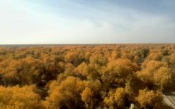 接着,我们去了阿瓦提县的刀郎布落,给我映象最深的是,登上高高的观光塔,看到一眼望不到边的胡杨林,满眼的金黄色,真是美极了!听爸爸说,胡杨树能活上千年,死后千年不倒,倒后千年不朽。