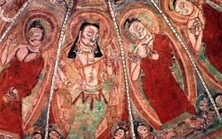 最后,我们又去参观了千佛洞。我看到一整面山上人工开凿出了上百个山洞,真是不容易呀,更加不容易的是在每个山洞里都有人工手绘的佛祖和飞天的图画。人类真是太伟大了!