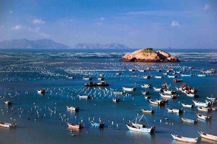 作为一个贻贝之乡,除了美食丰富外,这里常年还能看到贻贝养殖盛况,贻贝的白色浮子在阳光照耀下闪烁着点点银光,渔舟在碧波荡漾中穿梭,构成了一幅绝美的海上牧场图。