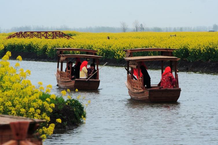 游客漫步油菜花海,穿行万湾河道,置身梦里水乡,诗画美景不胜收。城市的烦嚣和躁动一点点褪去,水乡的清悠与灵动悄悄地浸渗到心里。