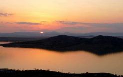 龙湾水库景区群山环抱,水域宽阔,山水相依,风景优雅。山上青松翠柏,百鸟争鸣,湖中沙鸥翔集,锦鳞游泳。水库中央有一孤岛,库区周边是独具规模的风力发电机组,其青山、碧水、蓝天、美妙风景恰是旅游观光、休闲娱乐的好去处。