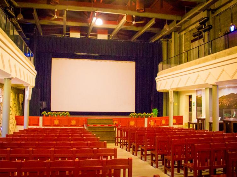 升平戏院原名“升平座”,1934年建于九份老街,是一座年代久远的两层老戏院,建筑采用了当时流行的仿巴洛克式的风格,成为了九份著名的一个景点。进入戏院,便能看到昔日售票口的小洞窗旁放置了留念章,你可以自己盖章留念。走进内部,当年六张一排的木头座椅,改成了七张或八张一排,座位仅剩下200多个位子,更多的空间则空出来作为展厅。