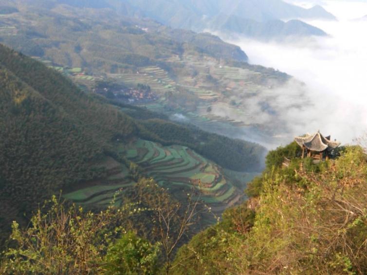 高山梯田,云海,奇峰,竹海,瀑布,多种风景都汇集在一个景区内 。这里最大的好处是,你不用爬山也能看云海。