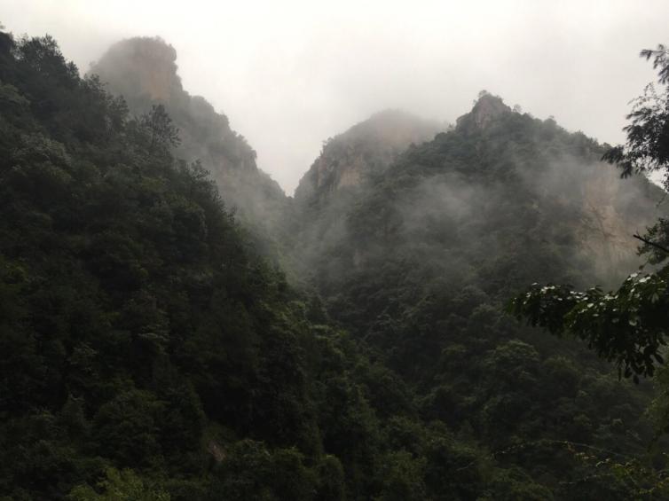 注意了,这是彭州的天台山,而不是邛崃的天台山。虽然都叫天台山,但是风景却大不一样,这座天台山没有开发,也不要门票哈!森林间全是笔直的树木,空气绝对超棒,我们去的那天山上全是雾,就像缥缈仙境一般。