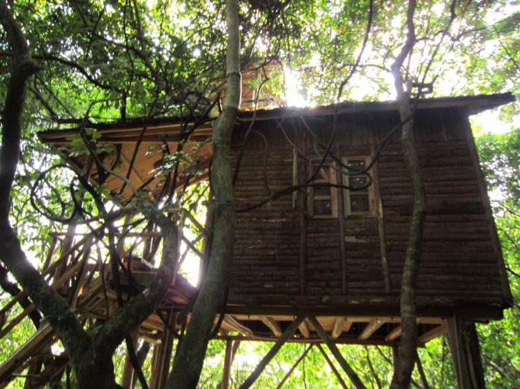 天门沟驿站树屋村,树屋室内外绝大部分由原木构建而成,引入自然、林,瀑布、山泉溪涧、树屋,可以体验一个传说中的树上假期。