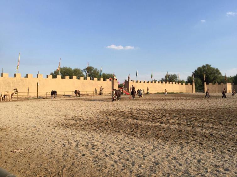 坐落于贺兰山脚下,显得古朴而静谧,走进景区能感受到西夏王朝的历史气息。游客可以看到笔画繁杂的西夏文字,欣赏西夏陶艺,或漫步在西夏建设特色的风情街、市井街、寨堡等。除此之外,还有气势恢宏的西北独家实景马战演艺《烽火西夏》,全面还原夏辽“河曲之战”实景表演,通过激烈的战争场面,再现西夏王朝的辉煌历史。