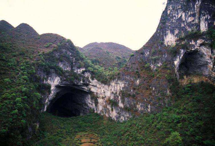 乐业天坑群在方圆不到20平方公里的崇山峻岭里,分布着24个天坑,是世界上最大的天坑群