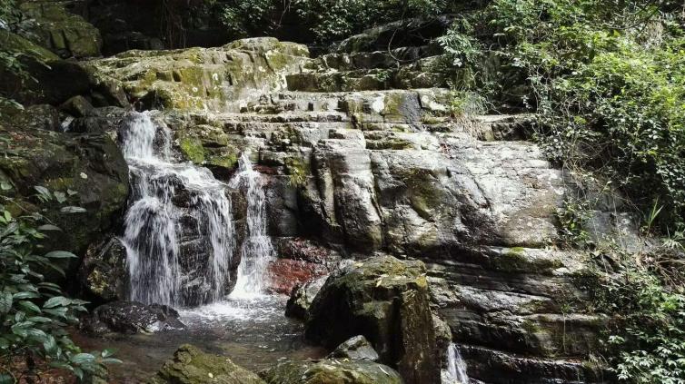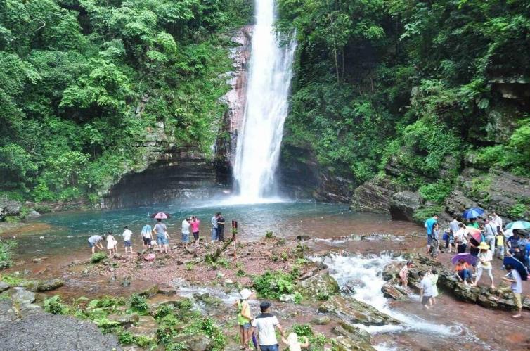 宝鼎瀑布发源于宝鼎山,宝鼎瀑布群由九级瀑布组成,延绵一千多米,构成了一幅约隐约现的美妙、奇特的长画卷。
