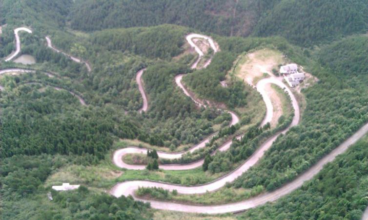 这条路线途径的景星岩盘山公路,据说这也是中国最危险的十大公路之一,路面狭窄,坡陡弯急,急转弯一个连着一个。景星岩的盘山公路不太长大约有5公里,但这5公里的盘山公路却是千回百转让人眼花缭乱,发卡弯,大回环,S弯保准把你绕得找不到北。