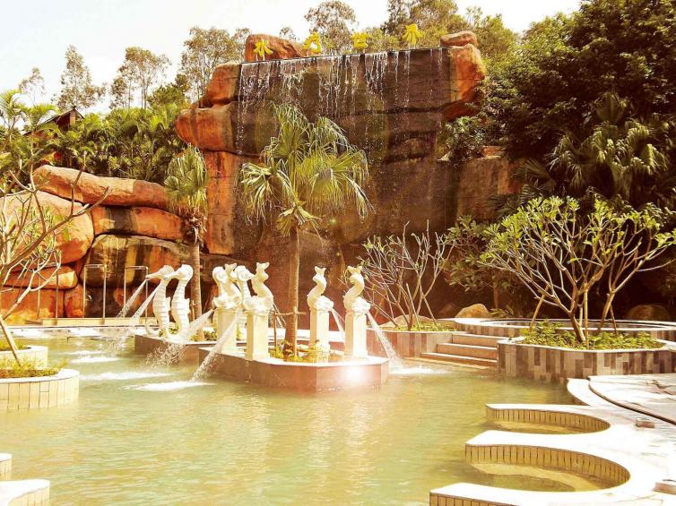 温泉水质优良,其中含有氡、氟、氢等各种微量元素60多种,其指数达到全国医疗矿泉标准,对治风湿症、关节炎等病症有显著疗效。温泉周围群山环抱,绿树成荫,一派南亚热带的风光。