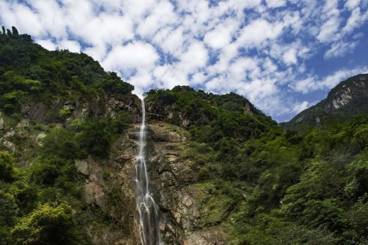 云谷飞瀑,全程共有五级,分别为云谷飞瀑、玲珑瀑、鱼鳞瀑、玉龙瀑、飞练瀑。瀑布一泻而下,仿佛一条白帘从天而降。