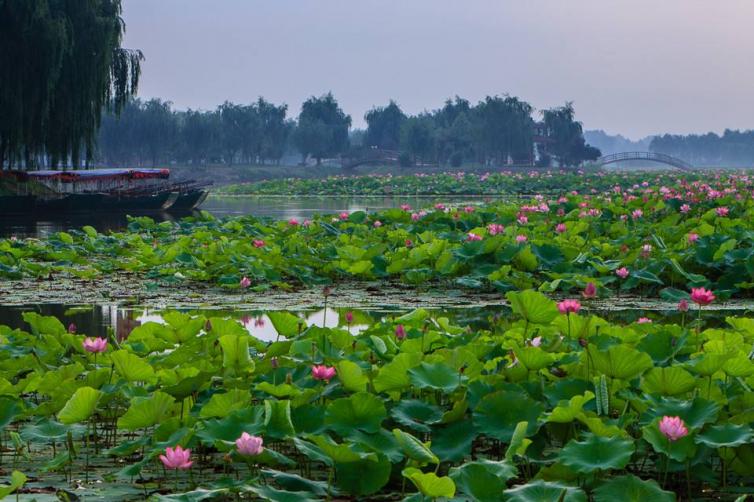 白洋淀水域辽阔,风景秀丽,气候宜人,是河北省避暑胜地。这里四季景色分明,水光天色,美不胜收。春天,芦苇出水,满淀青翠,每逢清晨,红日映透淀底,白洋淀好象披上了绿带霞衣;夏天,淀水涨满,鱼跃水面,绿苇摇曳,菱叶灿灿,荷花吐艳,一派水乡景色;秋天,芦花纷飞,稻谷飘香,鸭鹅成群,莲菱遍布,小舟穿梭往来,渔歌此起彼落;冬天,地冻冰封,一片碧玉,恰似一幅巨大的明镜镶嵌在冀中的原野上。