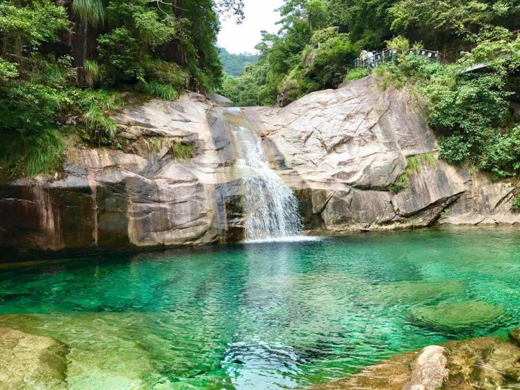 翡翠谷景区在黄山的东部,又称"情人谷",谷中之水源出炼丹峰、始信峰,游人可至的景区有6000米长,峡谷中分布着大小彩池数百个,有40余个彩池的面积超过100平方米,最大的彩池面积近1000平方米。此外还有同名专辑和电影。电影《卧虎藏龙》的拍摄地,也是新人拍婚纱照的首选之地。