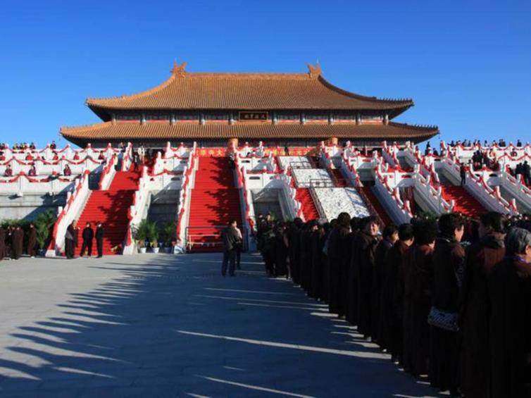 大雄宝殿是龙华寺的主体建筑,峻伟高耸,赫赫巍然。是明清殿宇式建筑风格,样式仿照北京故宫太和殿,比天安门城楼仅低20余厘米,是迄今为止亚洲最大的寺庙殿宇。