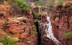 “狼牙坝”高出湖面50米,南北长15公里,面积为58平方公里,沟壑纵横,叠峦起伏,数以万计泥柱如林,连峰接岭,土壁陡峭,形状各异,大有幽谷深渊之感,犹如置身于原始公园之中。