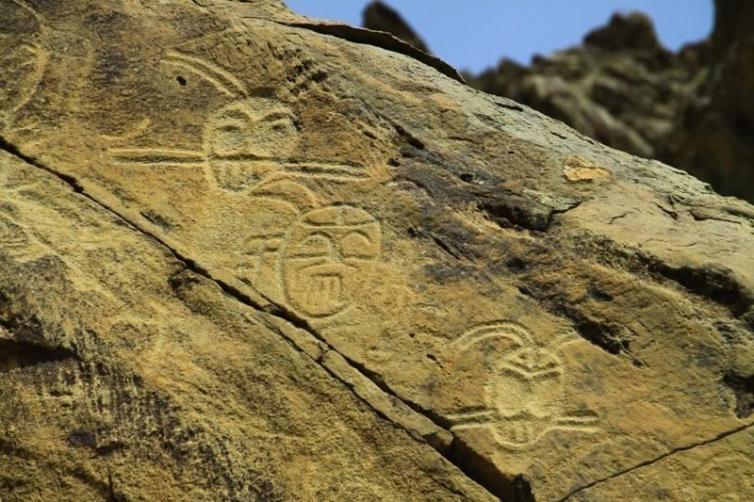 分布于贺兰山东麓山前、沟内岩壁上的凿刻图画。