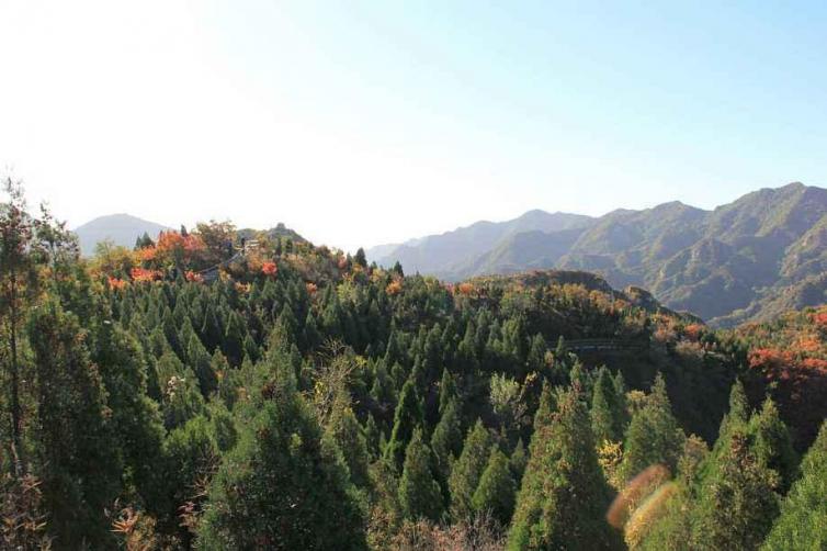 北京八达岭国家森林公园位于万里长城八达岭和居庸关之间,总面积4.4万亩,最高峰海拔1238米,分布植物539种、动物158种、林木绿化率达到96%,为中国首家通过FSC国际认证的生态公益林区。