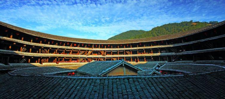 永定土楼,位于福建省龙岩市,是世界上独一无二的神奇的山区民居建筑,是我国古建筑的一朵奇葩。它历史悠久、风格独特,规模宏大、结构精巧。