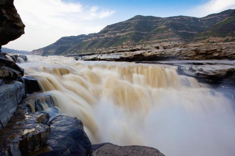 黄河水在这里收束为一股,奔腾呼啸,跃入深潭,溅起浪涛翻滚,形似巨壶内黄水沸腾,风在吼,马在叫,黄河在咆哮……
