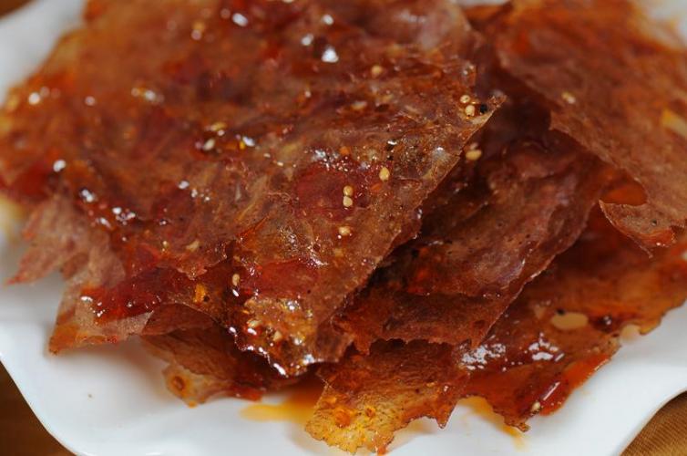 灯影牛肉,因其肉薄如纸,棕红闪亮,灯照显影而得名。具有质酥香脆、耐人细品、营养丰富、久存不坏的特点。