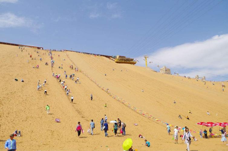 国内新兴的旅游项目,塔山风景区欢乐谷滑沙乐园,整个滑沙场共运来七千多立方米、一万多吨沙子,沙子都是从乳山精选的优质河沙,颗粒细滑,沙白如雪,平均厚度可到达50公分以上。