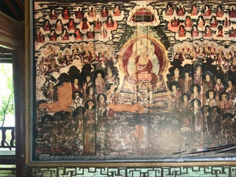 著名的“丽江壁画”是明代纳西族社会大开放的产物,它的绘制从明初到清初,先后延续了300多年。明末清初,是丽江壁画繁荣鼎盛时期,距今已有五百年历史。在这漫长岁月中,丽江经历了十多代土司与流官们的统治。土司与流官中,有开明者,也有昏庸者;有兴盛者,也有衰败者;有信佛者,也有信道者,还有信喇嘛教者。随着统治者的喜好,丽江的各种宗教常有此起彼伏的交替发展过程,加上丽江的庙宇常有时起时衰,这就直接影响了壁画的兴衰。1962年,云南省文物工作队的调查报告是这样写的:“丽江壁画分布于漾西之万德宫、大研镇皈依堂、寒潭寺、束河大觉宫、崖脚村木氏故宅、芝山福国寺、白沙琉璃殿、大宝积宫、护法堂、大定阁、雪松村之雪松庵等处。”当时,丽江现存的壁画还有十余处之多、200多幅作品。现存的55幅壁画分布在古城周边的宗教建筑群大宝积宫、琉璃殿、大定阁和束河的大觉宫等四座寺庙里。其中,位于大研古城以北五公里白沙村大宝积宫的壁画于1996年被国家公布为第四批全国重点文物保护单位。